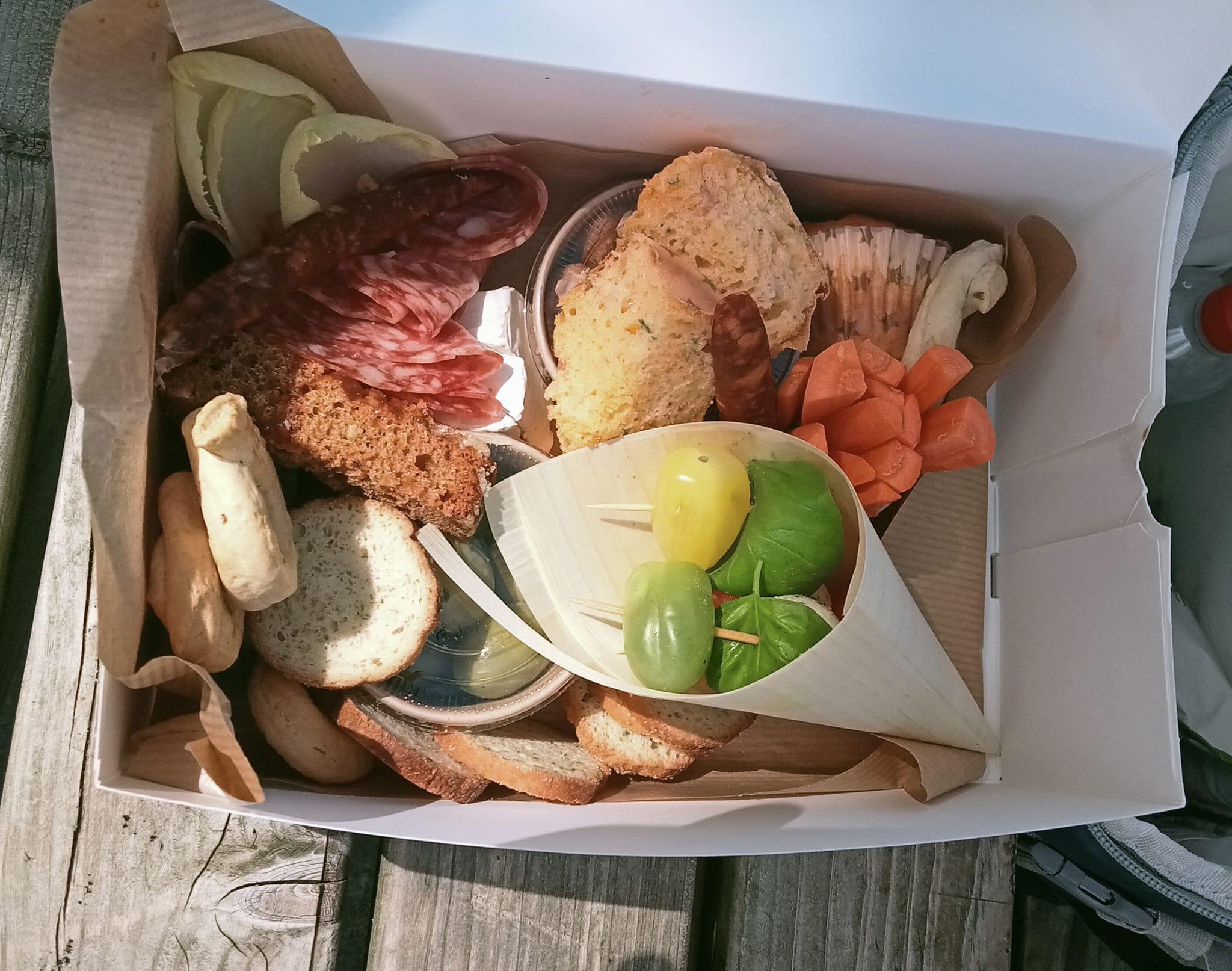 Le panier contient la formule choisie (avec les suppléments éventuels) + les verres, 1 ouvre bouteille, des couverts, des serviettes et 1 sac pour les déchets. Roadbook sur demande.